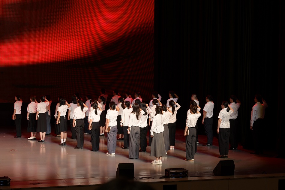 学校党总支副书记、校长杨群出席典礼并致辞。她代表学校向全体师生致以新学年问候的同时,也对2025级新生的到来表示了热烈的欢迎;在简单回顾过去一学年学校取得成就的同时,还勉励广大师生铭记历史,肩负“为天地立心”的使命担当,乘世运胜利闭幕之东风,康健体魄,坚守初心,放眼未来。