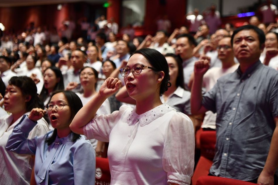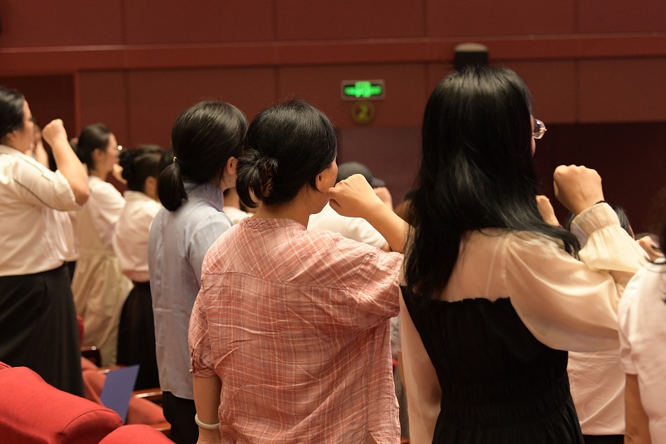 走进高新,共赴征程。8月20日上午,研修之旅在区域教师发展体系概览及历届新教师培训剪影中启幕。悟职业初心,修师德本色,新教师代表们以“何以为教”“何以为师”为主题分享了前置学习优秀心得。初识高新,全体新教师们带着教育初心,进行庄严的入职宣誓。最后,成都高新区教育体育局党组书记、局长蔡华红进行专题讲座,详细介绍了高新区区情、高新教育的机遇和挑战以及对新教师的成长寄予了希望,要以德立教,以才赋能,以情润心,以廉正身。
